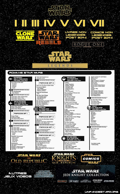 Le reste serait donc le nouvel Univers Étendu, à savoir « Legends ». Enfin non, puisqu’au Canon des films et des deux séries animées s’ajoutent également les romans et comics sortis depuis 2014 et non-estampillés « Legends ». Il n’y en a pas cinquante pour le moment, donc tout roule, mais ça ne va pas durer car le canon Star Wars s’enrichit de jours en jours avec de nouveaux romans et comics qu’il faut intégrer dans la dynamique globale du canon Star Wars.